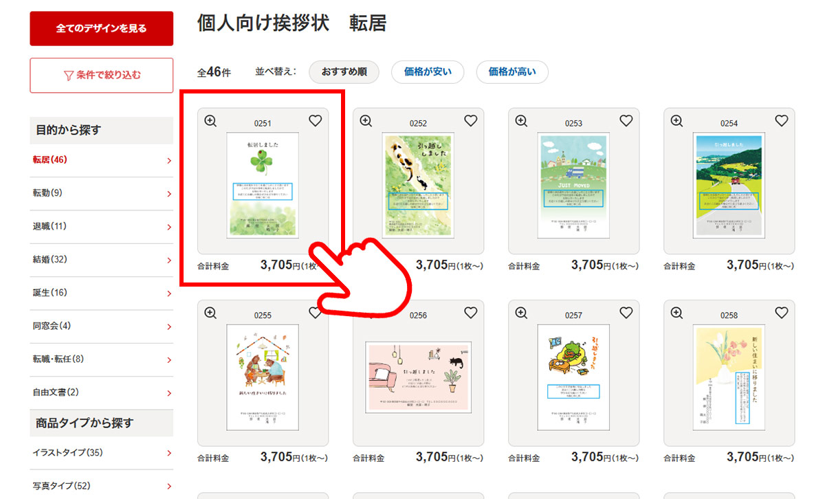 各商材の一覧ページよりお好みのデザインをお選びください。