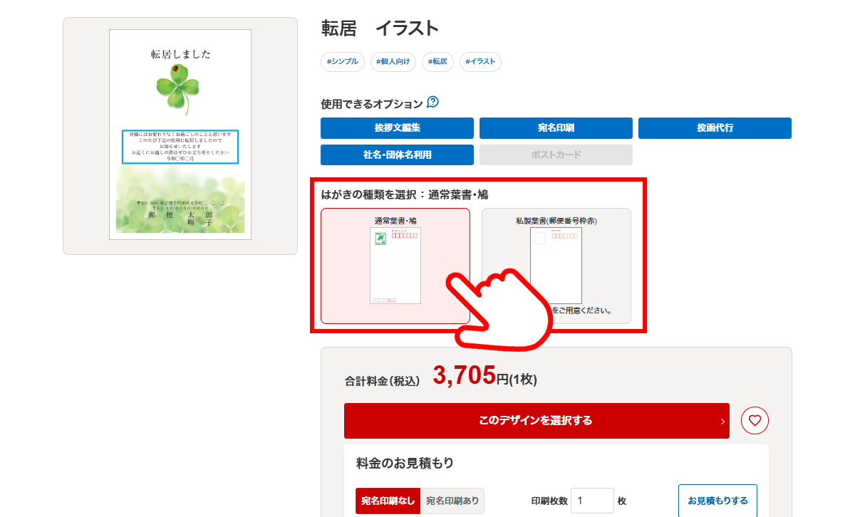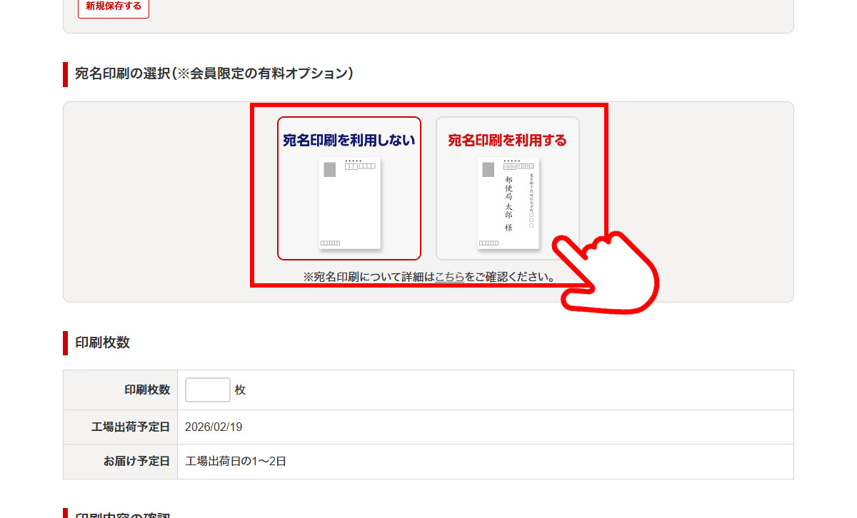 - 宛名印刷あり・なしをお選びください。
