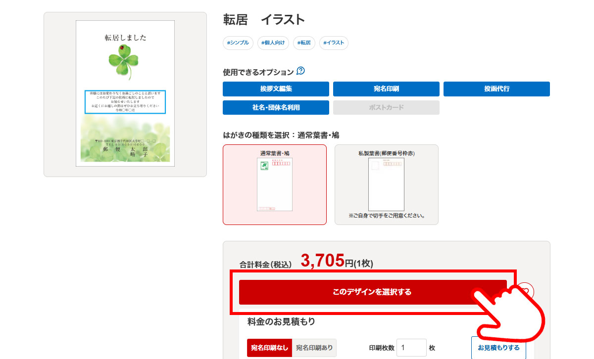 ボタン「このデザインを選択する」から次のページにお進みください。