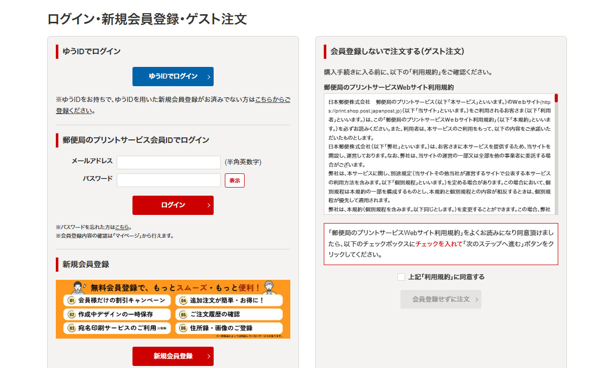 ※宛名印刷のお申し込みはログインが必須となります。