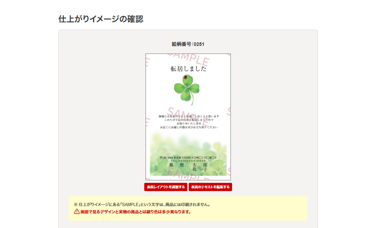 - 特急仕上げ(年賀状・喪中はがき・寒中はがきの場合)などのオプションがある場合は、利用有無を選択してください。