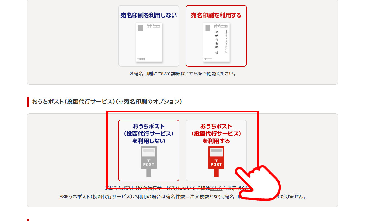 - おうちポスト(投函代行サービス)の利用有無を選択してください。