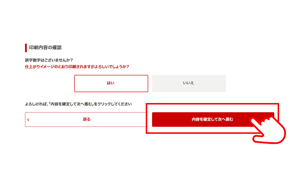ボタン「内容を確定して次へ進む」を選択し、次の画面へお進みください。