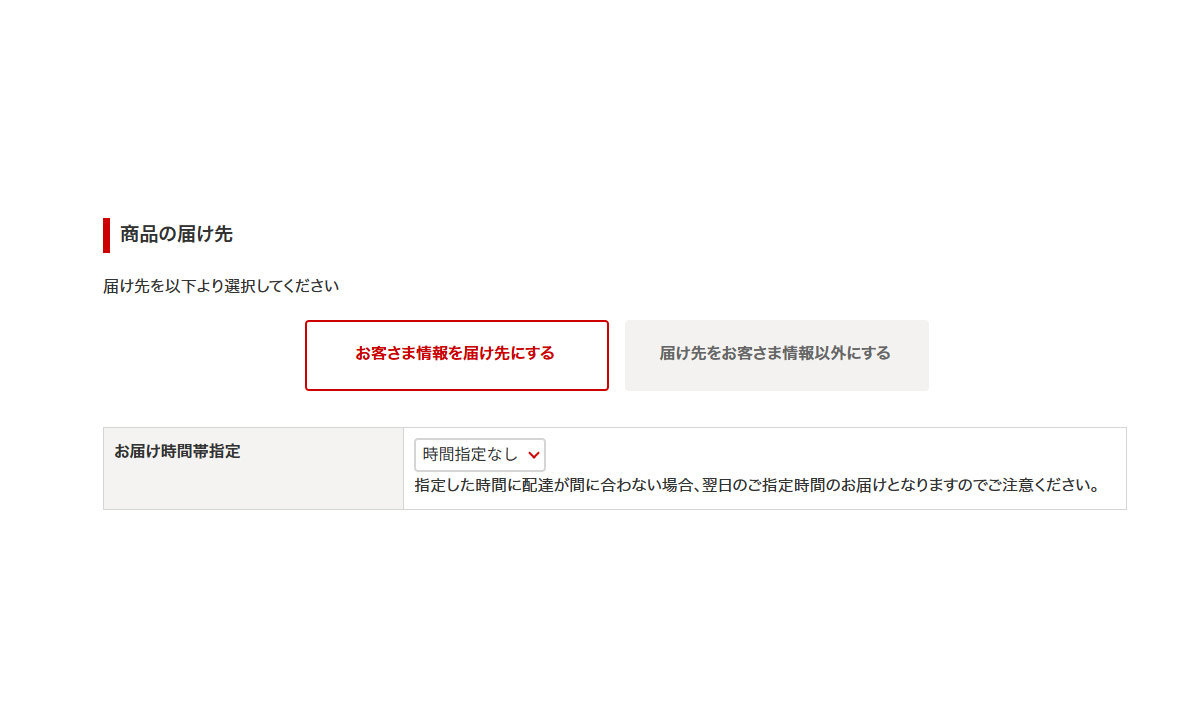 お届け時間帯指定があれば選択してください。