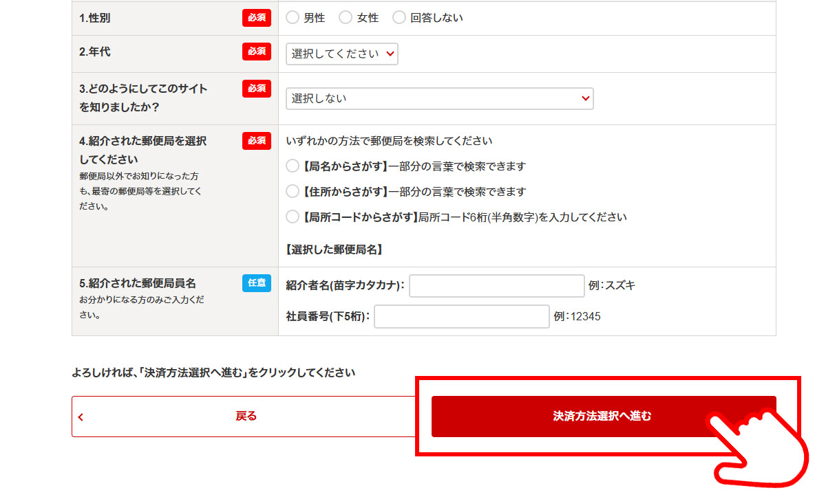 ※きゃらめ~る、おうちポスト(投函代行)お申し込み時など、お届け先入力欄が表示されない場合もございます。