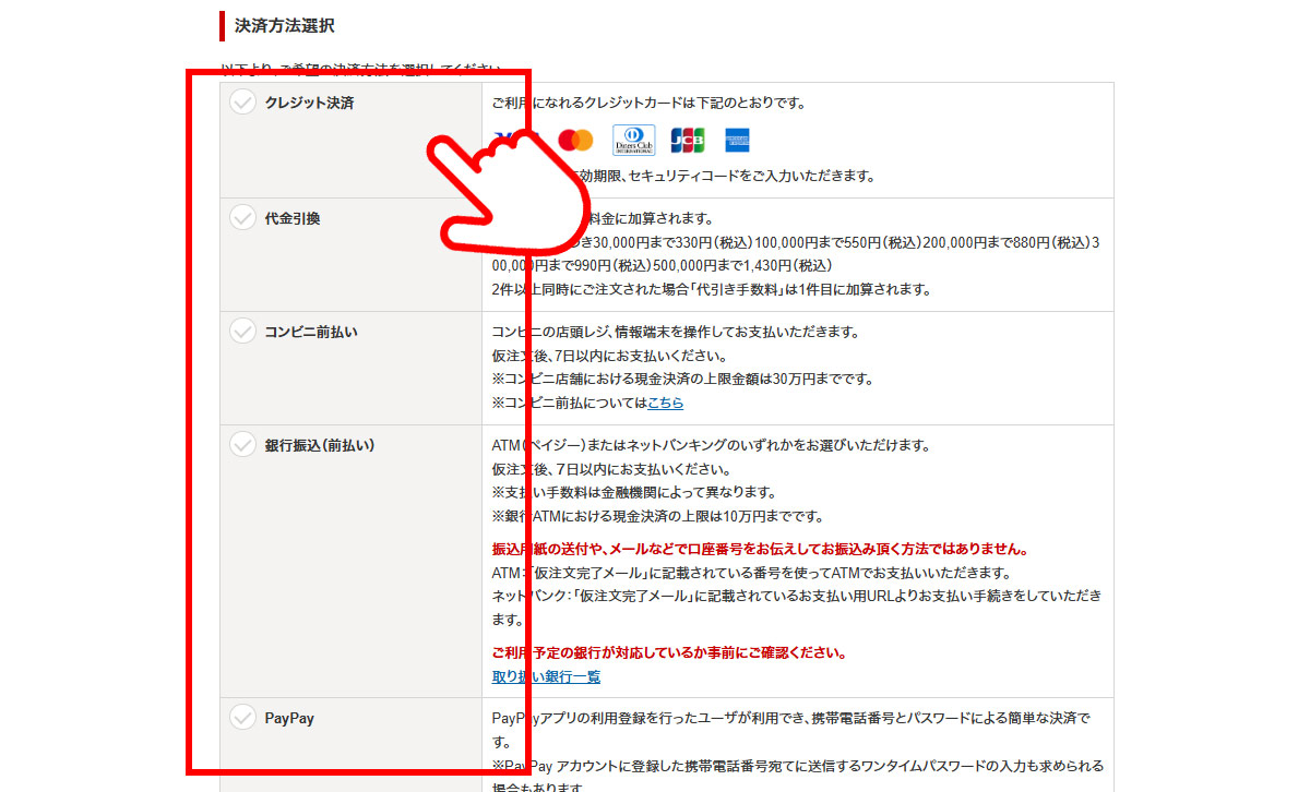 お支払い方法を選択してください。