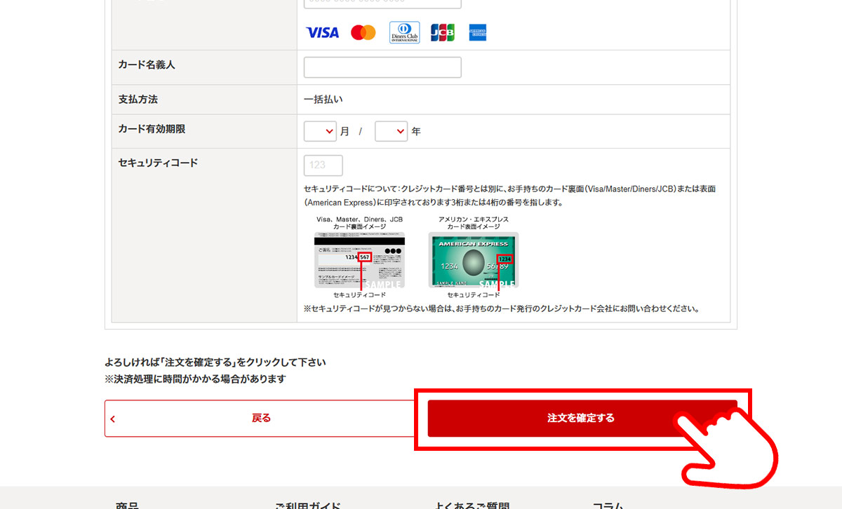 - よろしければボタン「注文を確定する」を選択して下さい。